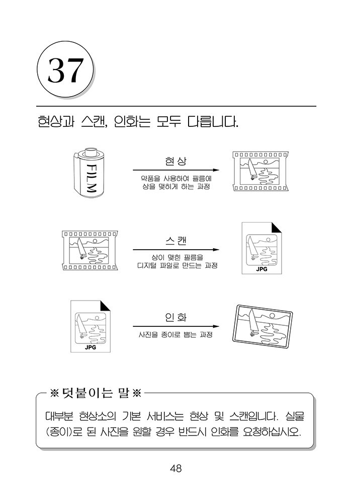 저는 필름을 현상하는 곳에서 일하고 있습니다. 요즘 필름들을 많이 찍으시는지 점점 많은 분들이 필름을 현상하러 오십니다. 그런데 가끔 안타까운 경우들을 종종 봅니다. 기본적인 실수나 의외로 단순한 이유로 인하여 소중한 추억과 기억을 잃거나, 간단한 카메라 조작이나 필름의 기본적인 사항들에 대해 헤매시는 경우들 말이죠. 하지만 필름을 찍으시는 분들도 답답할 때가 있을 겁니다. 아마 대부분의 분들이 지인이나 인터넷에 알음알음 물어가며 시작하는 경우도 많겠죠. 보통 우리가 접하는 사용설명서는 유용한 정보는 많지만 보기에 답답한 경우가 많죠. 그래 서 저희 ‘일삼오-삼육’은 보기 쉽고 편한 필름생활 사용설명서를 만들었습니다. 언제 어디 서나 펼쳐볼 수 있도록 가볍게 만들었습니다.