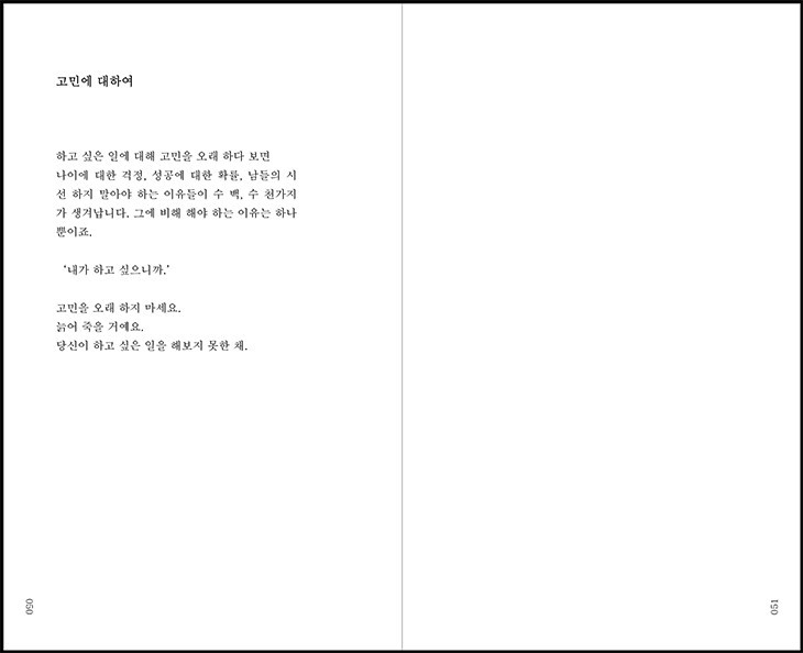 이 책은 독자에게 말을 걸지 않는다. 그리고 무엇을 주려 하지도 않는다. 하지만 이 책을 읽은 사람들은 작가의 기록 된 시간 안에서 자신들의 잊었던 시간 속 귀중한 무엇을 찾을 수 있을 것이다. 그러길 바란다.