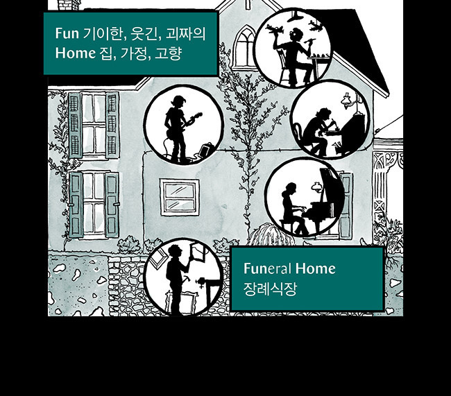 <펀 홈>은 망가진 퍼즐 조각처럼 해체된 한 가족의 내밀하고도 웃픈 희비극이다. 커밍아웃한 레즈비언인 앨리슨이 고향인 미국 펜실베이니아의 시골 마을 비치 크리크에서 장례식장(funeral home)의 장의사이자 영문학 교사로 일하다 돌연 죽음을 맞은 아버지 브루스 벡델의 죽음을 역추적하며 시작된다. 정상 가족의 강박 속에서 평생 자기 자신을 숨기고 산 아버지 브루스 벡델의 비밀스런 동성애와 작가 자신의 당찬 퀴어 성장담 사이의 교차점을 회고하며 한없이 고독하지만 특별했던 가족 이야기를 매우 절제된 관찰과 묘사로 훌륭하게 복원한다.