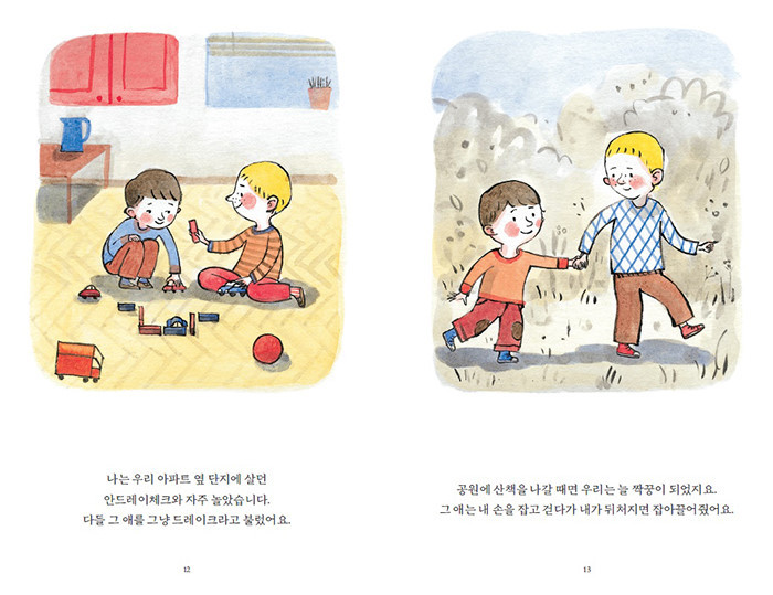 『첫사랑』은 유치원에서 처음으로 마주한 사랑에 대한 이야기입니다. 분명 사랑이었으나 세상이 억지로 ‘우정’이라 이름 붙인, 잃어버린 시간과 감정에 대한 책이지요. 어린이의 동성애를 귀엽고 친근하면서도 애틋한 글 그림으로 담았습니다. 퀴어 성소수자뿐 아니라 사랑이 어려운 모든 어른이에게 특별한 감정과 시간을 환기시켜 줄 동화입니다.