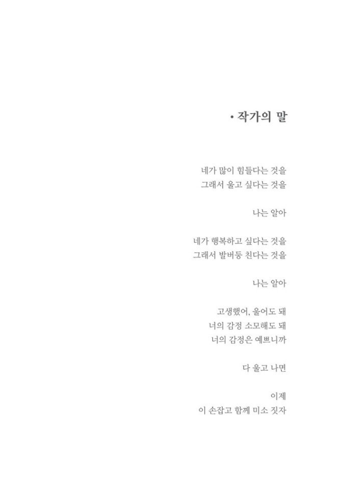 이 책은 그런 각박한 세상 속에서 자신들의 이야기를 풀며 한 장의 위로를 전하는 글을 담았습니다.