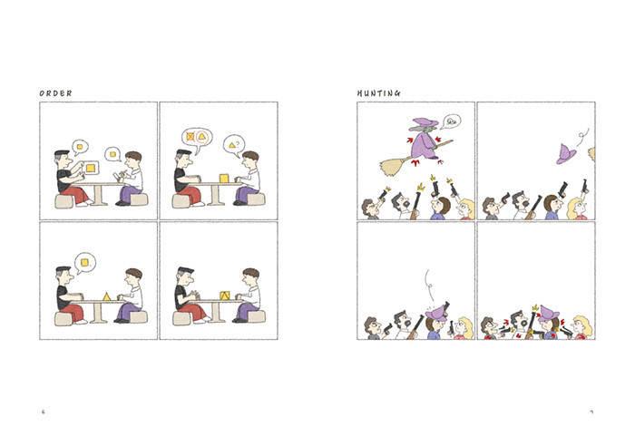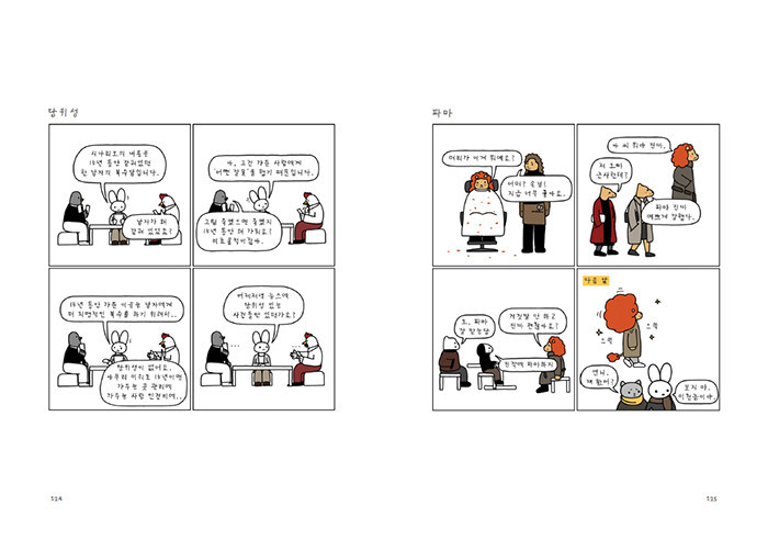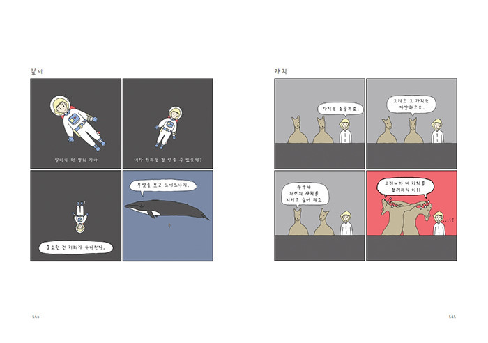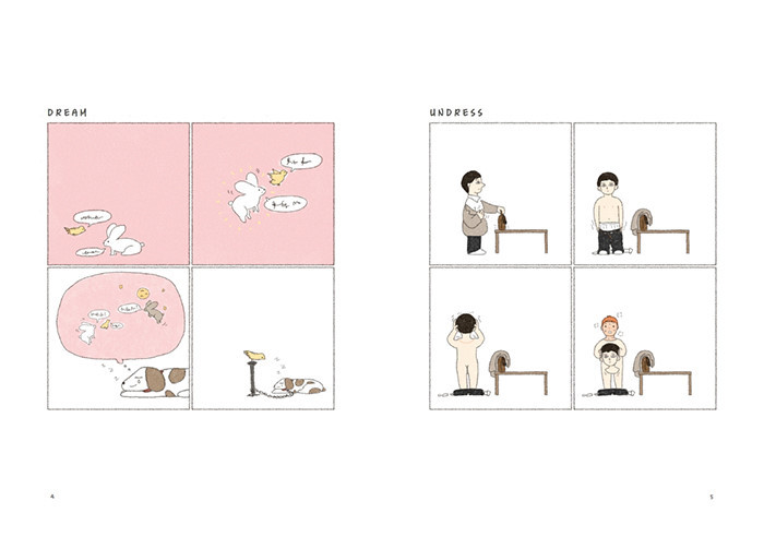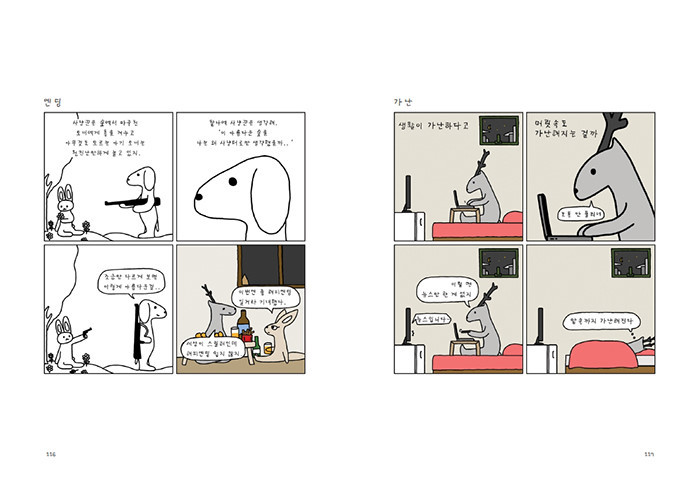 이 책은 네컷 그림들로 구성된 단상들을 엮은 책이며 주로 대사 없이 그림으로 다양한 생각을 표현하였습니다.