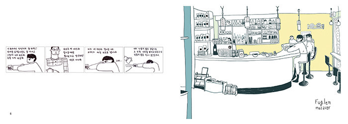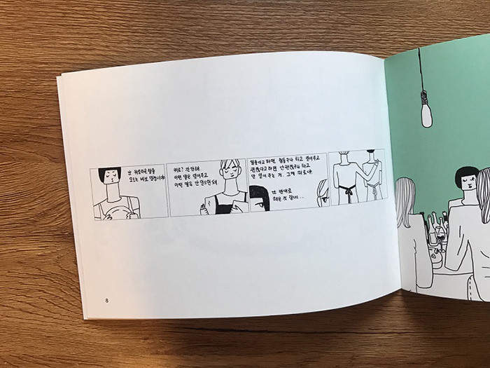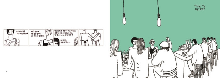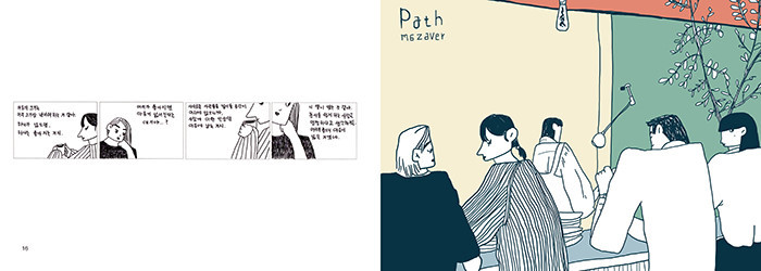 책의 오른쪽 페이지엔 도시의 풍경들이 그려져 있습니다. 풍경 속 인물들은 왼쪽 페이지의 만화 속에 들어오고 나서야 비로소 각자의 목소리를 내기 시작합니다. 인물들은 담담한 표정으로 이야기하지만 대화의 무게는 결코 가볍지 않습니다. 서로의 이야기를 경청하되, 결코 자기주장을 망설이지 않는 대화를 통해 그 어떤 핑계로도 그냥그냥 넘기면 안 되는 중요한 것들을 담았습니다.