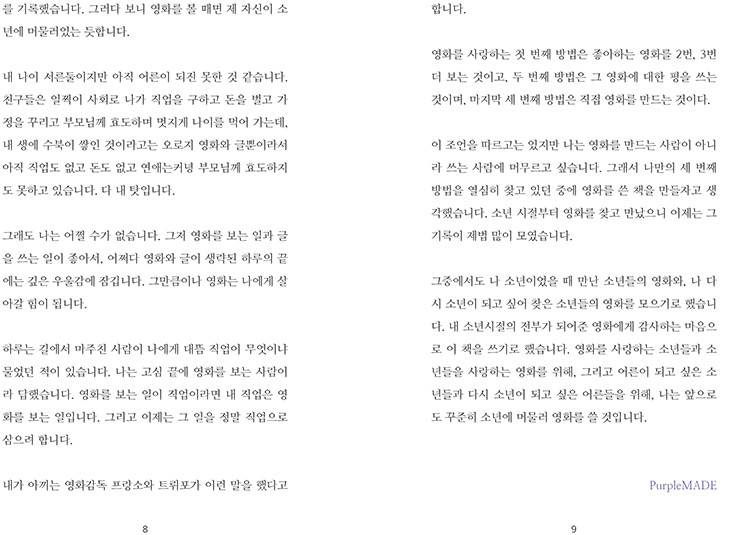 영화 같은 소년들과 소년 같은 영화들을 모은 책 입니다.