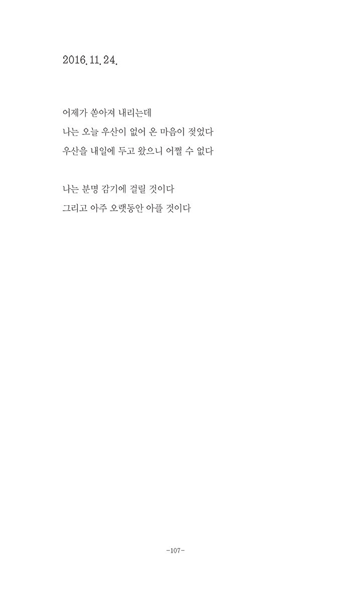 나는 오늘 우산이 없어 온 마음이 젖었다