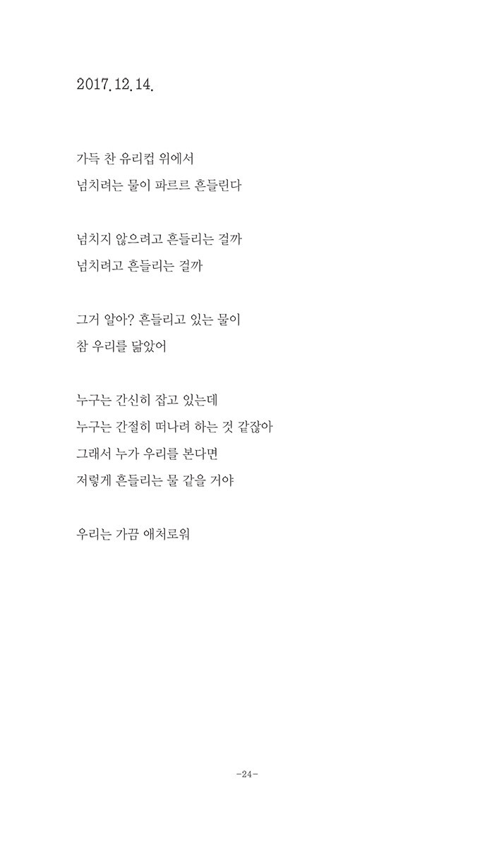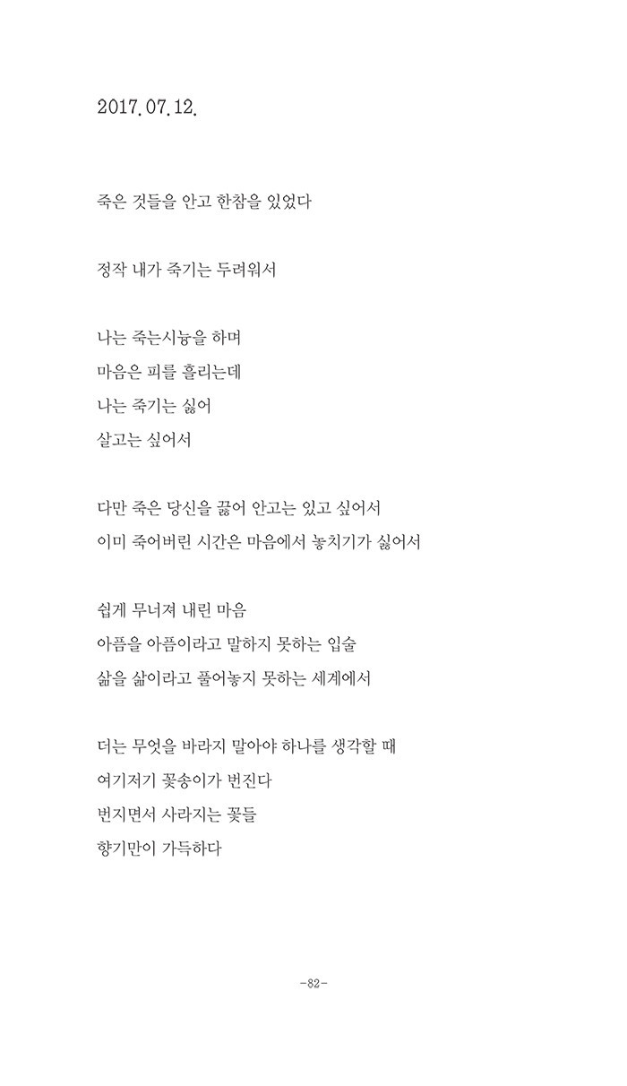 비로소 그 단어들을 쪼개진 마음에서 꺼내어 서툴게 이어 붙입니다.