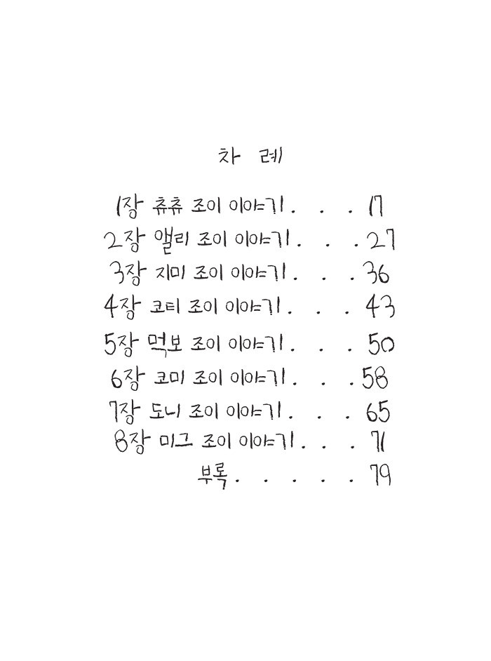어느 날 첫째인 츄츄 조이가 산책하러 나갔다가 길을 잃고 맙니다.