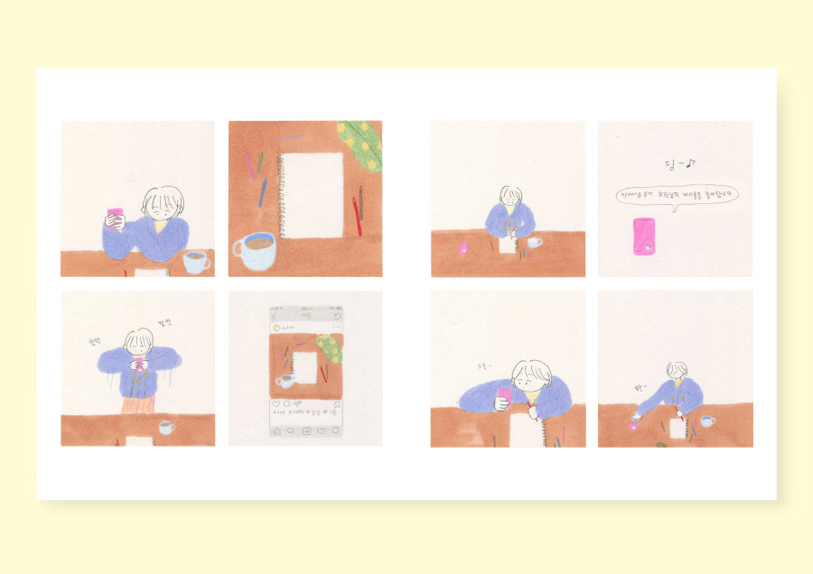 카페에서 시간을 보내다 모임의 약속시간인 8시가 점점 다가오는데...