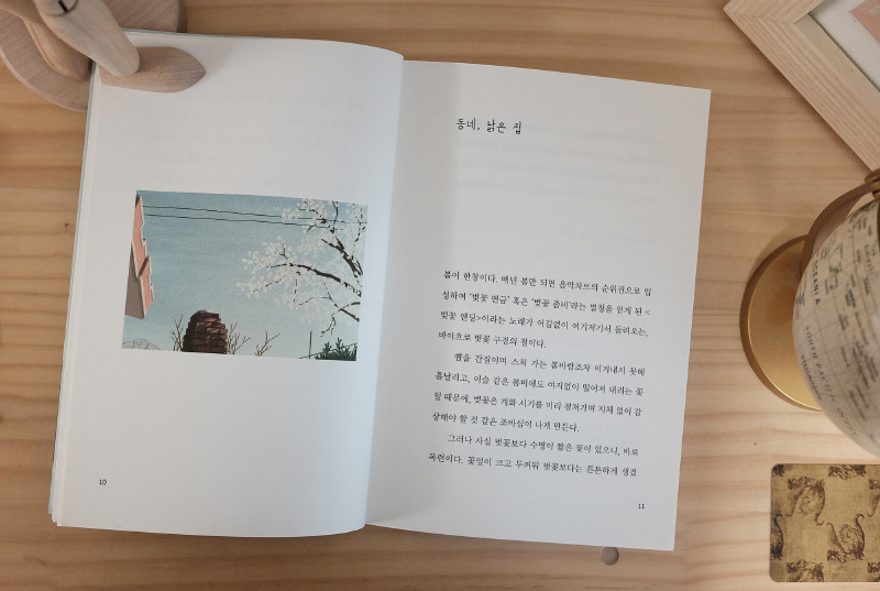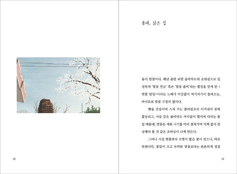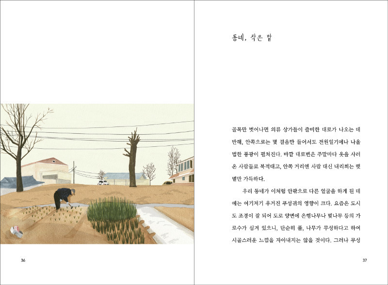 새로운 곳에서 길을 익히고 생소한 풍경을 기억에 새기다 보면 어언간 이곳에서의 삶은 기억의 창고로 들어갈지도 모릅니다.(중략) 저도 모르게 동네 어딘가에 흘렸거나, 곳곳에 숨겨놓았던 시간을 그러모았습니다. - 프롤로그 중에서