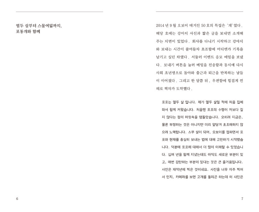 - 「열두 살부터 스물여덟까지, 포동개와 함께」, p.8.