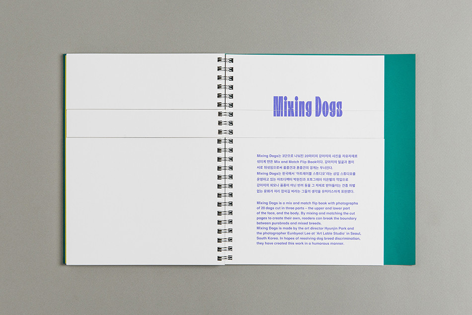 Mixing Dogs는 3단으로 나눠진 20마리의 강아지의 사진을 자유자재로 섞이게 만든 Mix-and-Match Flip