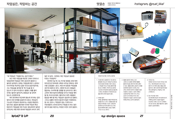 주목할 만한 섹션이 신설되었습니다. 디자이너의 공간을 볼 수 있는 디자이너스 스페이스에서는 매 호 한 명의 디자이너를 선정하여 작업실을 소개합니다. 그의 공간과 공간을 구성하는 물건에 관해 이야기 합니다.