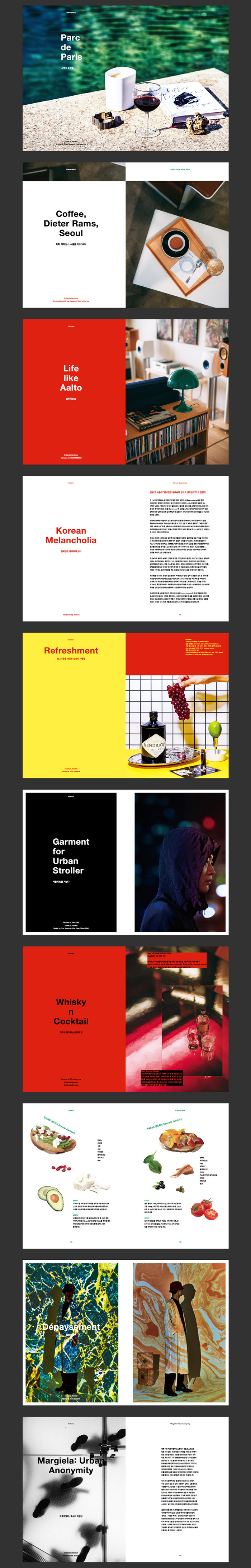 네 번째 이슈의 주제는 도시의 삶(Urban Life)입니다. 뮤지션, 에디터, 아티스트, 교육자, 패션 디자이너 등 서로 다른 영역에서 고유한 도시의 삶을 영위해 나가고 있는 다섯 이야기를 들어봅니다. 이제 우리의 일상에 없어서는 안 될 커피와 술을 향한 시선에서 출발해 미래의 라이프 스타일을 바꿔놓을 무인양품과 아마존의 새로운 확장에 도달합니다.