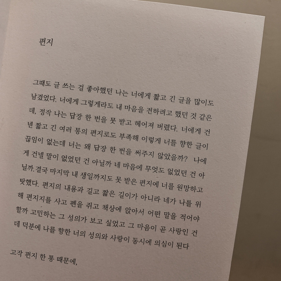 우리의 다음 사랑은 미련이 줄어들고 이별은 짧아지기를 바라며 사랑을 지나가는 모두에게 띄운다.
