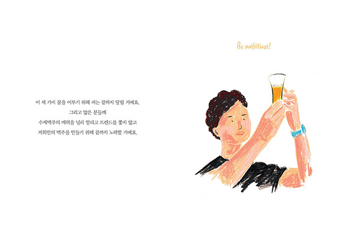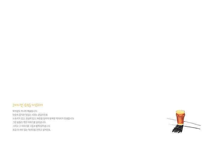 오미마켓은 먹거리에 예술을 더하고 있는 매장들이 입점되는 가상의 마켓을 콘셉트로한 조금은 독특한시리즈 그림책입니다. 예술이란 미적(美的) 작품을 형성하는 인간의 창조활동인데요. 이제는 먹거리가 단순히 배를 채우는 수단을 벗어나 예술의 면모를더해가고 있습니다. 먹거리를 통해 사람들이 서로 대화를 나누고 즐거움을 공유하며 행복을 느끼기 때문입니다. 오미마켓은 실제 매장이 아닌 그림책 안에 담긴 매장입니다. 그 대망의 1호점은 구리의 크래프트 맥주 전문점인 ‘앰비션 브루어리’입니다.