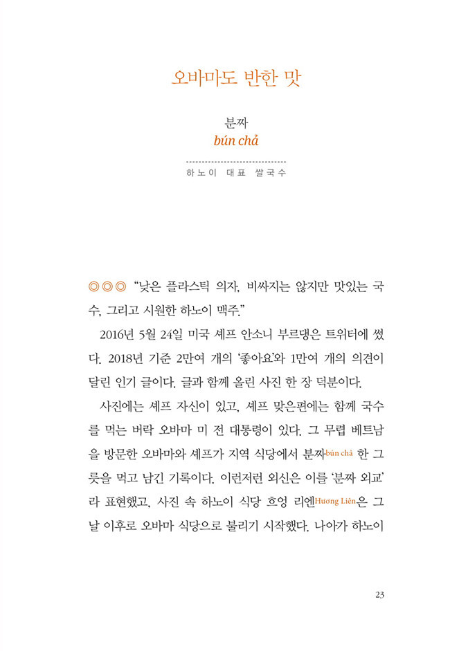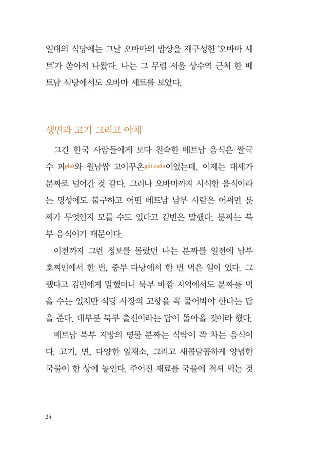 나는 김빈을 2018년 봄부터 여름까지 여러 차례 만나 다채로운 음식 이야기와 음식 사이에 깃든 베트남 문화를 흘리지 않고 다 받아 적어 글로 만드는 일에 집중했다. 김빈이 1차로 들려준 이야기로 초고를 썼고, 곧 베트남행 티켓을 끊었다. 책에 실린 모든 음식 이야기는 하롱베이 출신 김빈이 서울에서 들려준 설명으로 시작하고, 다섯 번째로 베트남을 찾은 나의 검증으로 마무리된다.