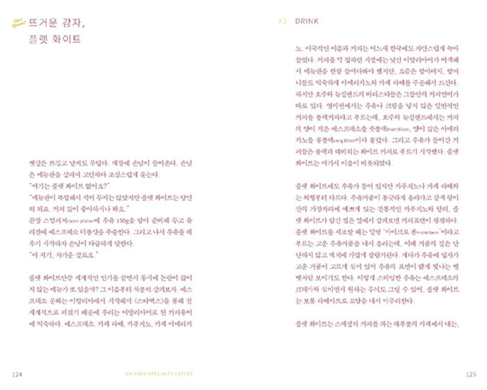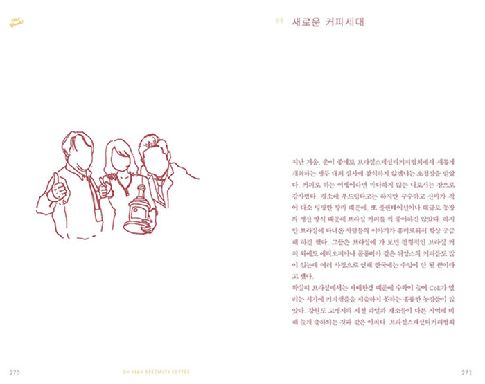 스페셜티 커피의 의미가 도입된 후, 많은 커피인들이 커피 본연의 향미와 다양한 산지, 추출 및 로스팅 과정 등을 상세히 소개하기 위해 고민하고 노력했다. 그러나 아직까지 대다수의 소비자는 분위기 좋은 카페와 다양한 베리에이션 메뉴에 관심이 집중되어 있으며, 커피를 단순히 카페인 음료로 바라보거나 커피에 대해 깊이 알기를 꺼려하는 경우가 많다. 이에 <오예! 스페셜티 커피!>는 소비자의 관점에서 누구나 호기심을 가질 만한 이야기와 소소한 일러스트로 스페셜티 커피문화를 자연스럽게 이해하고 즐길 수 있도록 구성한 책이다.