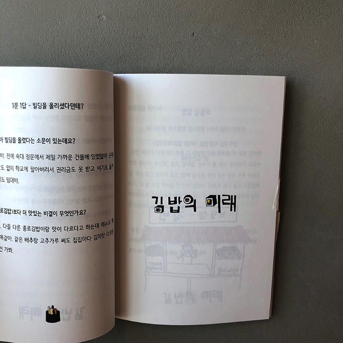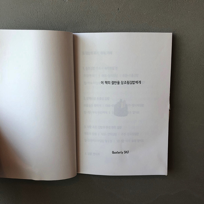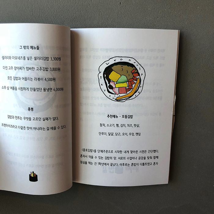 어렸을 때 심하게 체한 이후 김밥을 못먹던 필자가 트라우마를 극복하고 김밥의 미래에 의미 있는 존재가 되고 싶어서 쓴 본격 김밥 에세이입니다.
