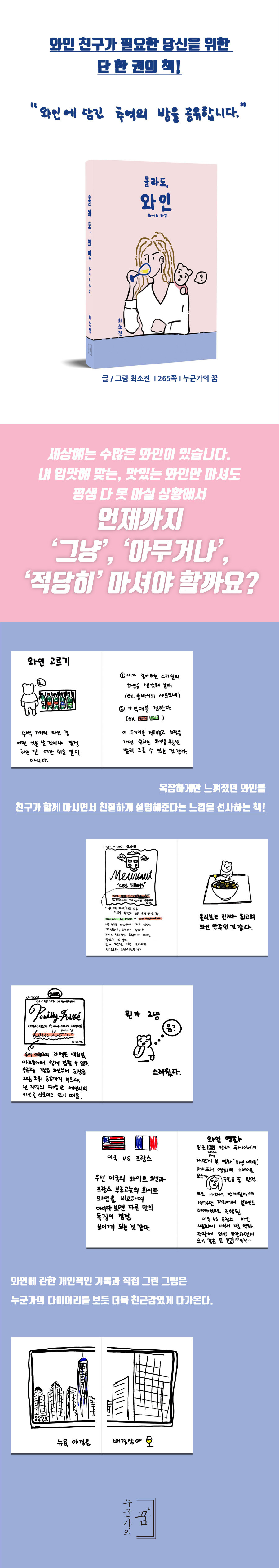 “ 와인에 담긴 추억을 공유합니다. “ 소소하게 와인을 음미하는 동안 스쳐 지나간 생각들, 와인 지식들 등을 그림으로 표현한 그림 에세이.