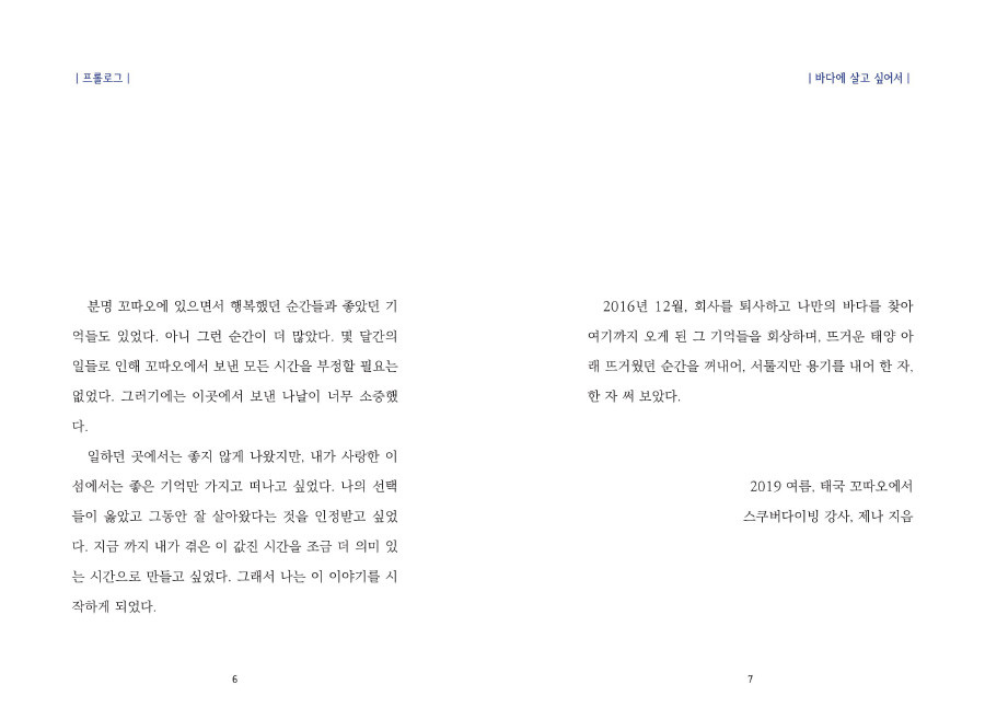 이 시간을 이대로 보내 버리는 것이, 3년간의 바다 생활을 허무하게 끝내버리는 것이 아까워 이 책을 시작하게 되었습니다.