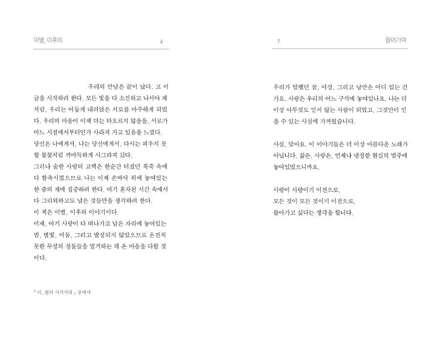 누군가를 만나 사랑하기 이전에, 우리는 먼저 이별을 배워야 한다고 생각했습니다.