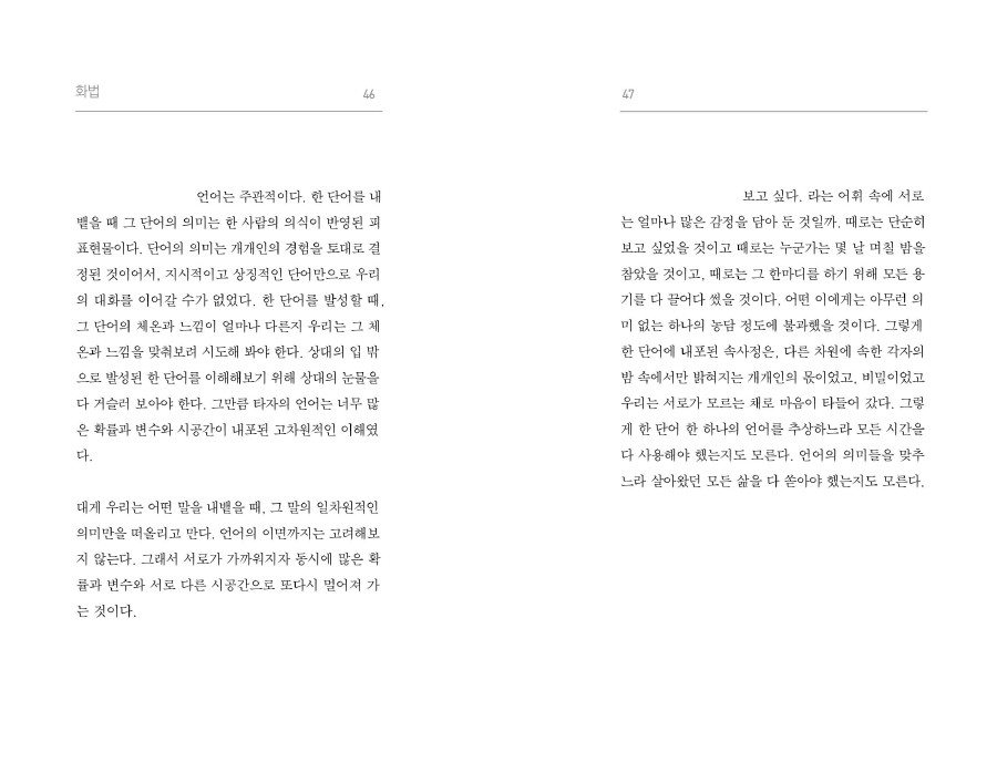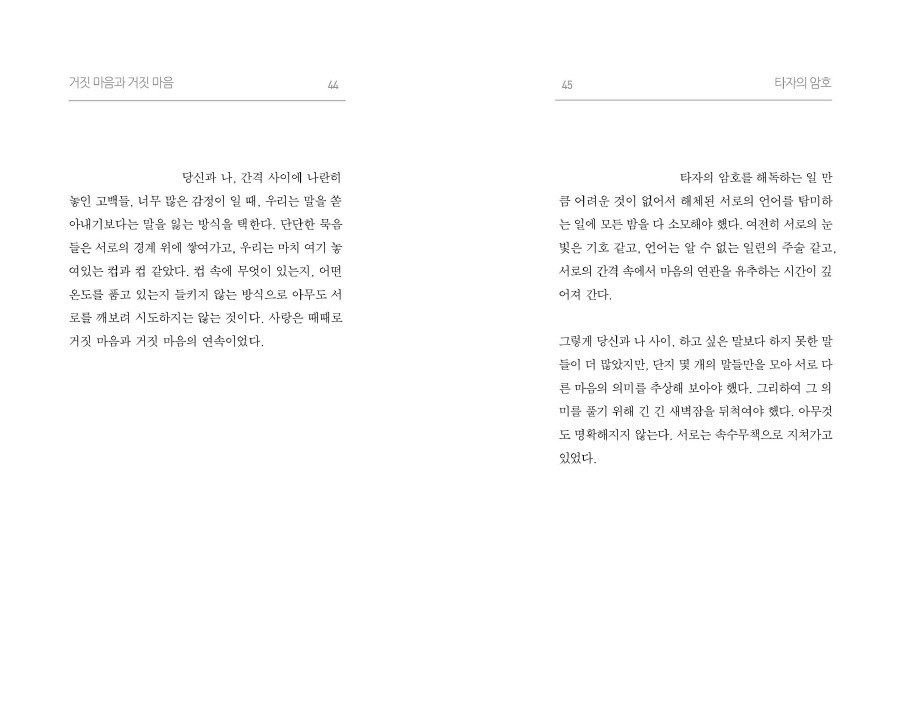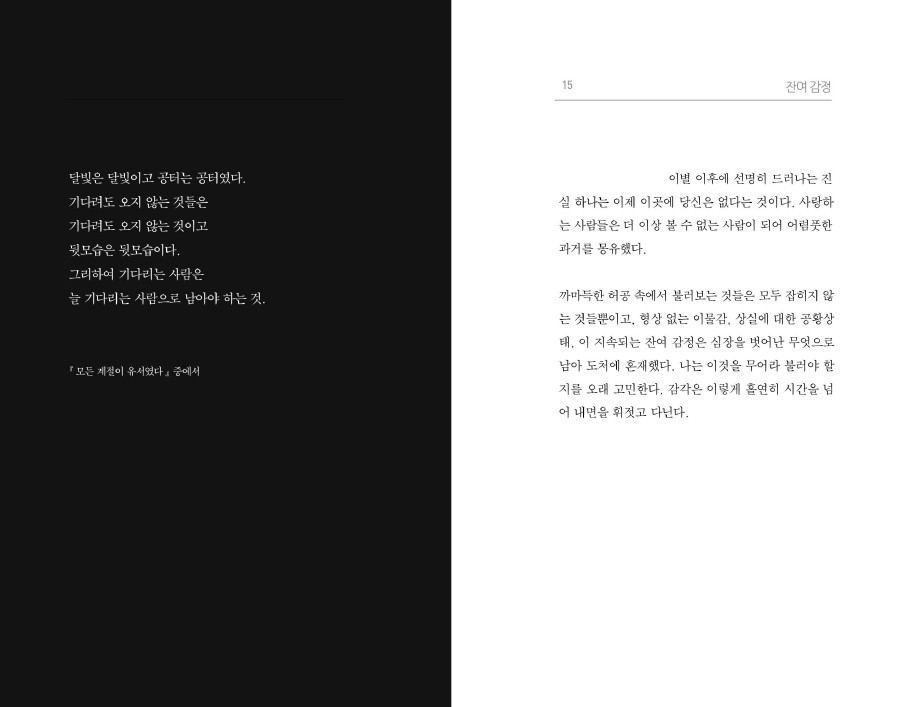 지난 시간을 되감아가며 상처를 하나 둘씩 꺼내어 봅니다. 사랑이 극복되기 위해서는 그것들을 낱낱이 바라봐야 했어요.