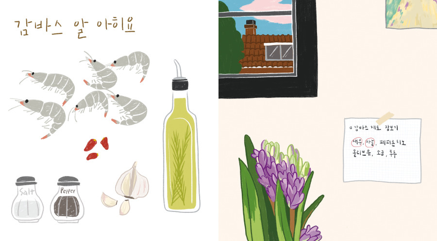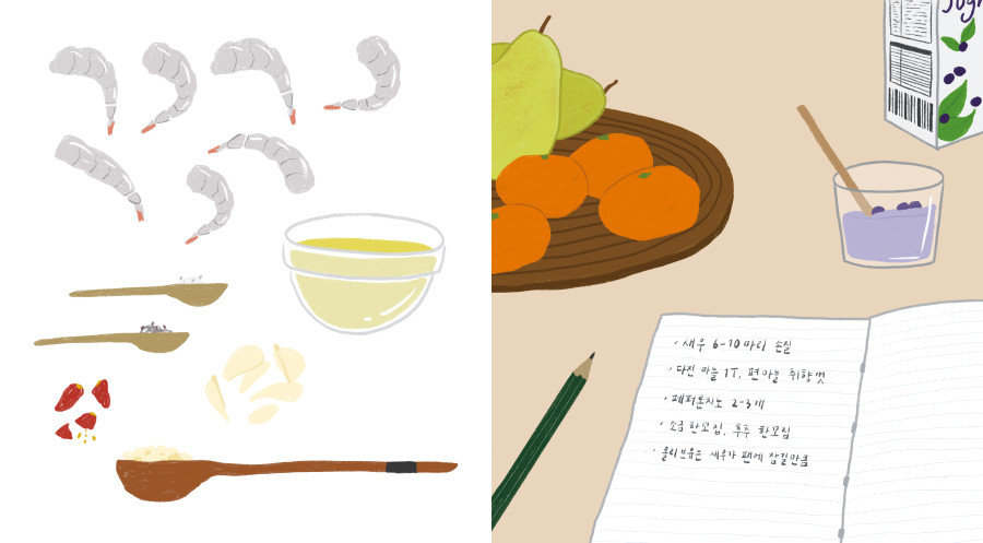 <23시의 식탁>은 모태 야식러버인 작가가 소개하는 다양한 안주 레시피가 담긴 요리 그림책입니다.