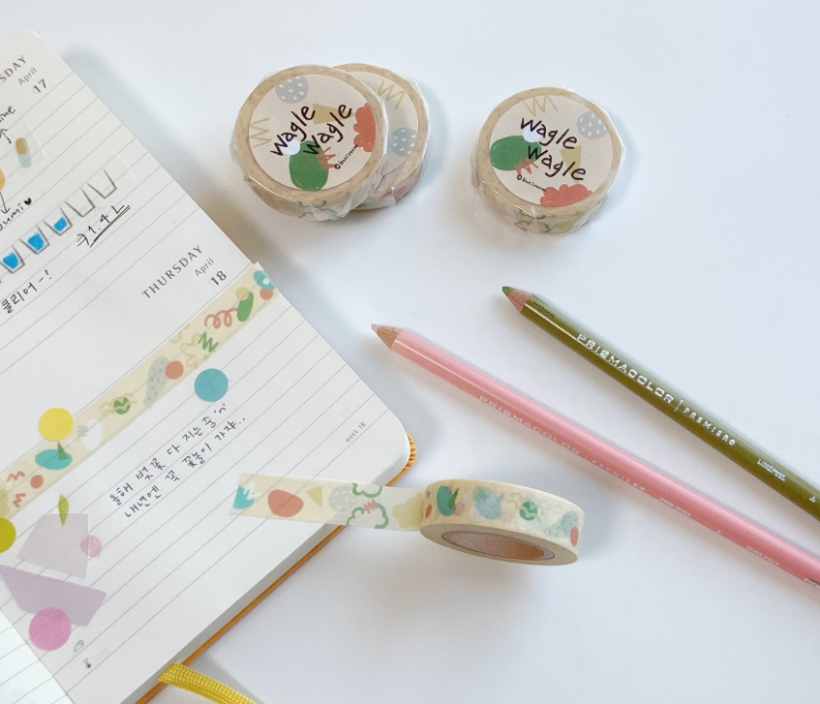 알록달록한 마시멜로우같은 모양들이 와글와글 모여있는 마스킹테이프 입니다.