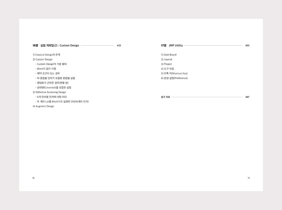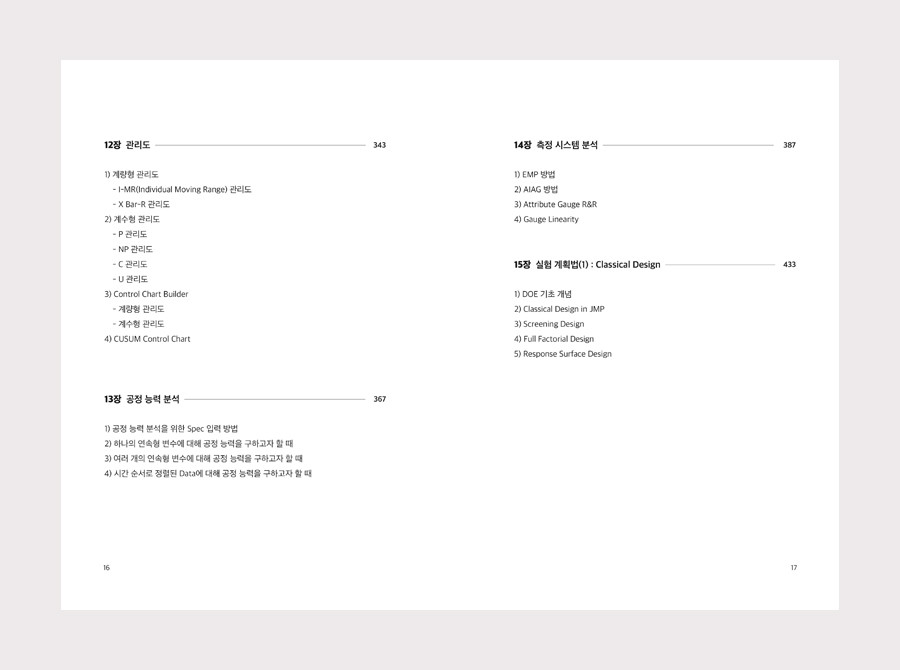 최근 2년동안의 JMP 사용자들의 질문에 대한 답변을 주요 내용으로 하여 작성된 만큼, 사용자들이 궁금해하거나 필요로 하는 내용을 구성되어 있습니다. 통계에 대해서는 핵심적인 내용만 간략히 설명하였으며 JMP 활용법에 초점을 맞추어 내용이 구성되어, 처음으로 JMP를 접하는 사용자들을 위한 입문서로 아주 적합한 책입니다.