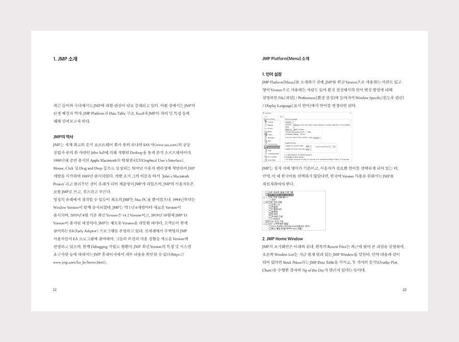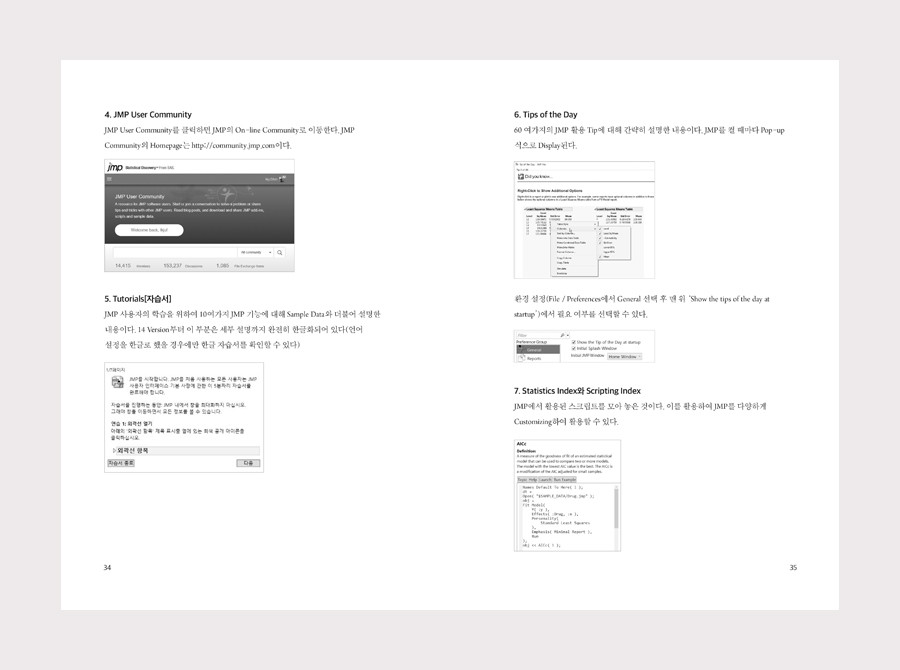 JMP 최신 버전(14.2)의 내용을 반영하여 작성되었으며, 설명의 명확성, 국내 사용자들의 JMP 사용 현황 및 향후 활용도, 확장성을 고려하여 영어 버전을 기준으로 설명된 JMP 활용 가이드입니다.