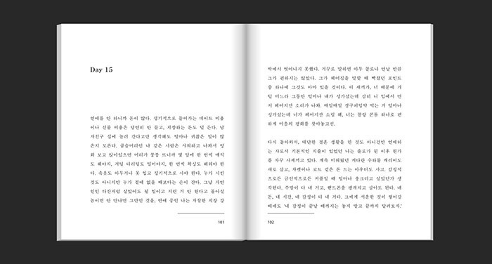 괴물처럼 나를 삼키려 드는 아침의 천장, 5분에 한 번씩 교차하는 후회와 후련함, 술먹은 후 당장 전송 누르고 싶지만 대신 원고에 옮긴 문장들을 실시간으로 담았습니다. 문서 프로그램이 띄워져 있는 집 데스크탑 모니터 앞에 (거의 항상 취해있었던) 매일 밤 앉았습니다.