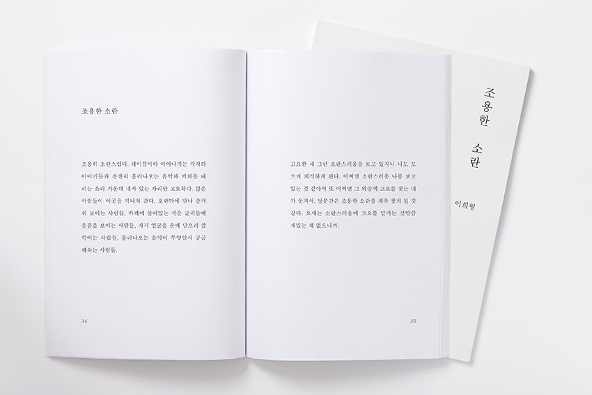 고요에서 소란에서 우울에서 사랑에서 저에게서 찾을 수 있는 이야기들을 엮어봤습니다. 여러 감정의 소용돌이 안에서 헤매고 있는 당신에게 이 책을 소개합니다. 감정의 소용돌이 안에서 제가 헤엄치고 있는 바다의 모습을, 색깔을, 향기를 노래한 책입니다. 그들을 마주하고 함께 일렁이는 마음에 몸을 던져 당신만의 파도를 느꼈으면 좋겠습니다.