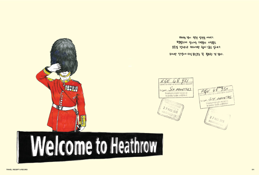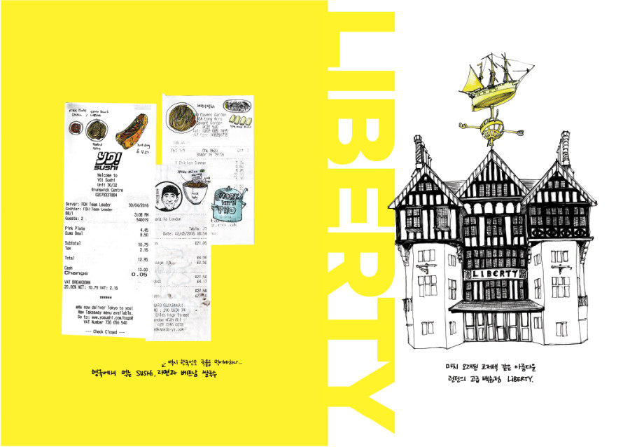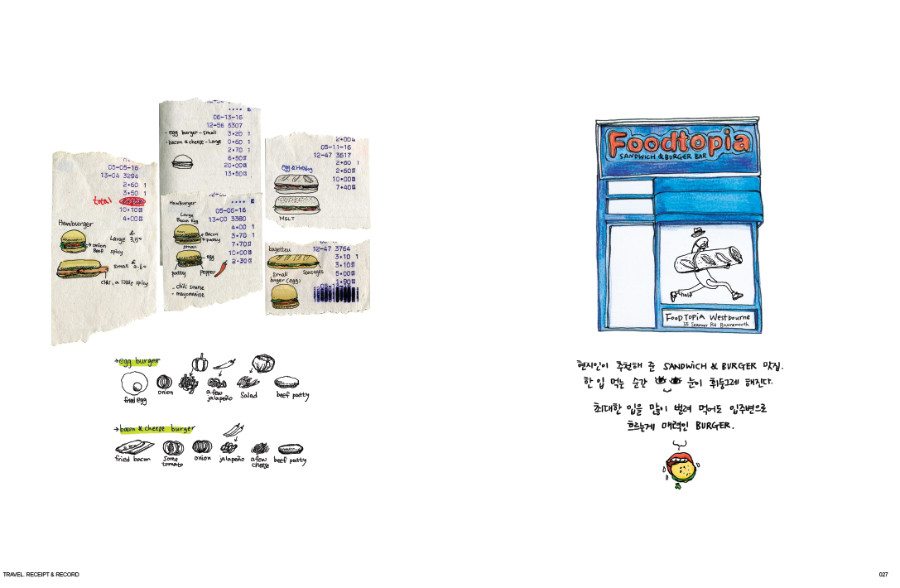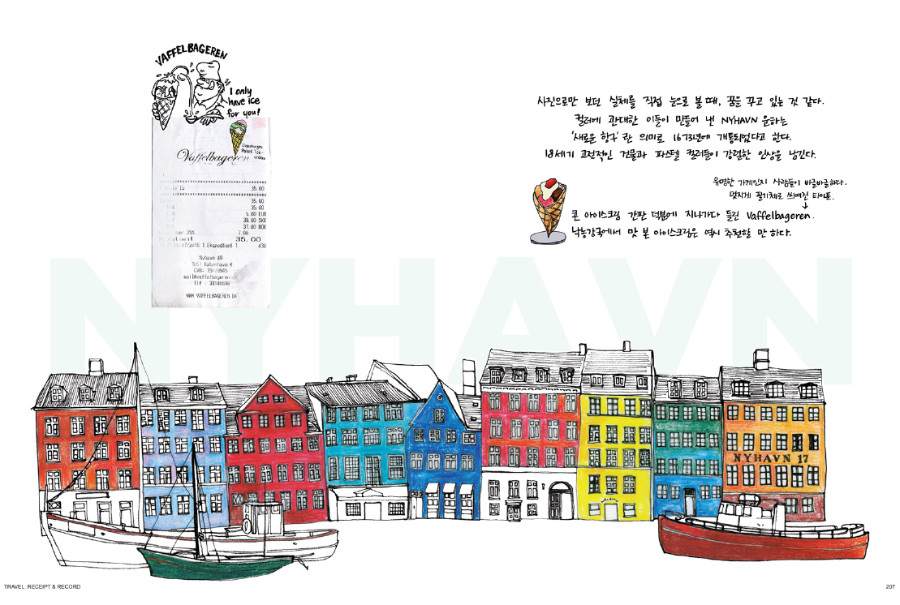 유럽 여행 중 수집한 영수증과 일러스트를 일기형식으로 엮은 책입니다. 발전적인 미래를 찾아 방문한 영국, 독일, 스웨덴 등의 여정을 영수증 위에 드로잉으로 풀어낸 여행 이야기입니다.