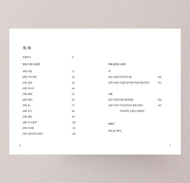 '빌보드차트'라고 하여, 술을 드신 손님들이 일정 주제에 대해 글을 쓰는 일종의 백일장을 열었고, 더불어 ‘책바 문학상’을 열어서 시와 에세이 부문으로 여러 응모글 중 우수작을 선정하여 2부를 완성했습니다.