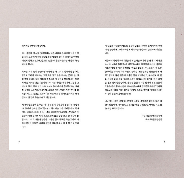서울 연희동에 있는 "책바"라는 공간에서 2주년을 기념하여 만든 책입니다.