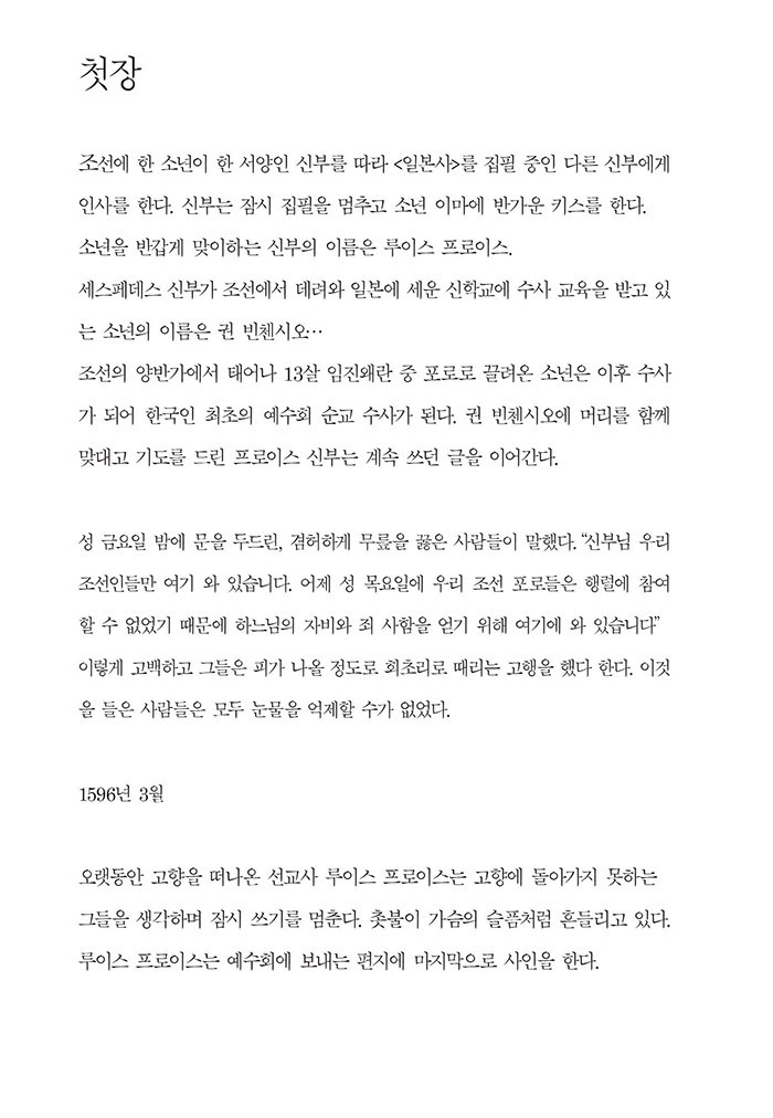 한국과 일본이 동시에 겪은 임진왜란을 비롯해 종교적, 문화적 충돌에 대한 세밀하고 방대한 역사적 고증이 글마다 힘을 실고 있고 아직 현재 진행 일지 모르는 끝나지 않은 전쟁, 한일 관계 속 동시대적 고민도 강렬한 영화 장면처럼 디테일 있게 담겨 있다. 임진왜란과 일본 전국시대, 동/서양의 만남, 일제 강점기, 근대 예술가의 고뇌, 파업노동자와 세월호, 조선학교와 위안부 할머니 그리고 현재 한국에 자리잡은 종교라는 이름의 ‘믿음’의 모습까지, 과거와 현재를 다층(多層)적으로 해부하며 만나는 사건과 사건에 연결은 어떤 극한의 지점을 향해 나아가면서 독자에게도 끊임없이 화두를 던진다.