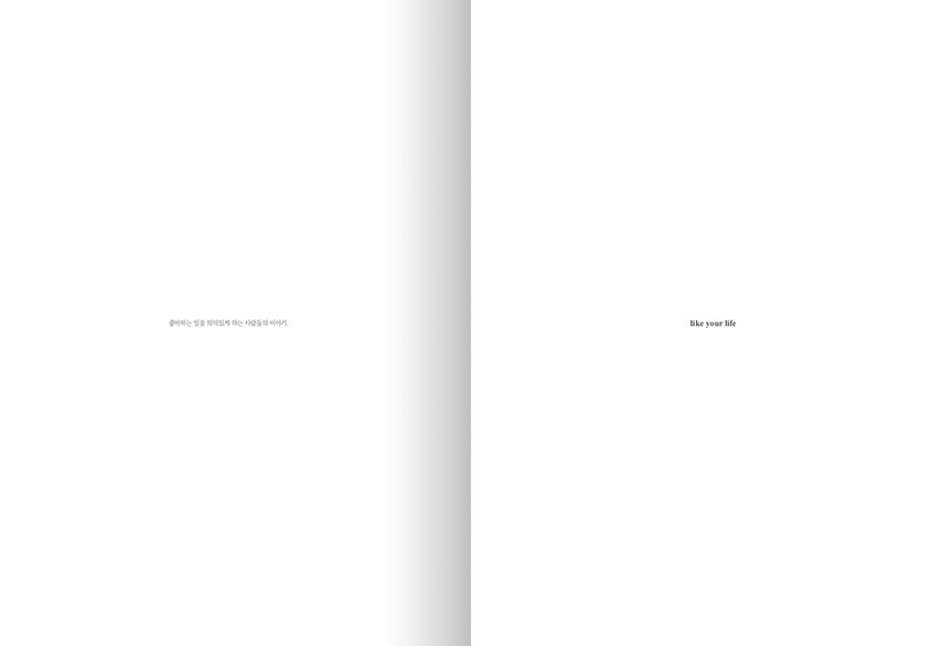 'like your life'라는 슬로건을 바탕으로 '좋아하는 일을 하는 사람들의 이야기'를 담은 인터뷰 형식의 매거진입니다. 한 호에 한 분야의 일을 정해서 그 일을 의미있게 하는 사람들의 삶을 담습니다. 창간호는 '제주도 게스트하우스 호스트'의 삶을 담았습니다.