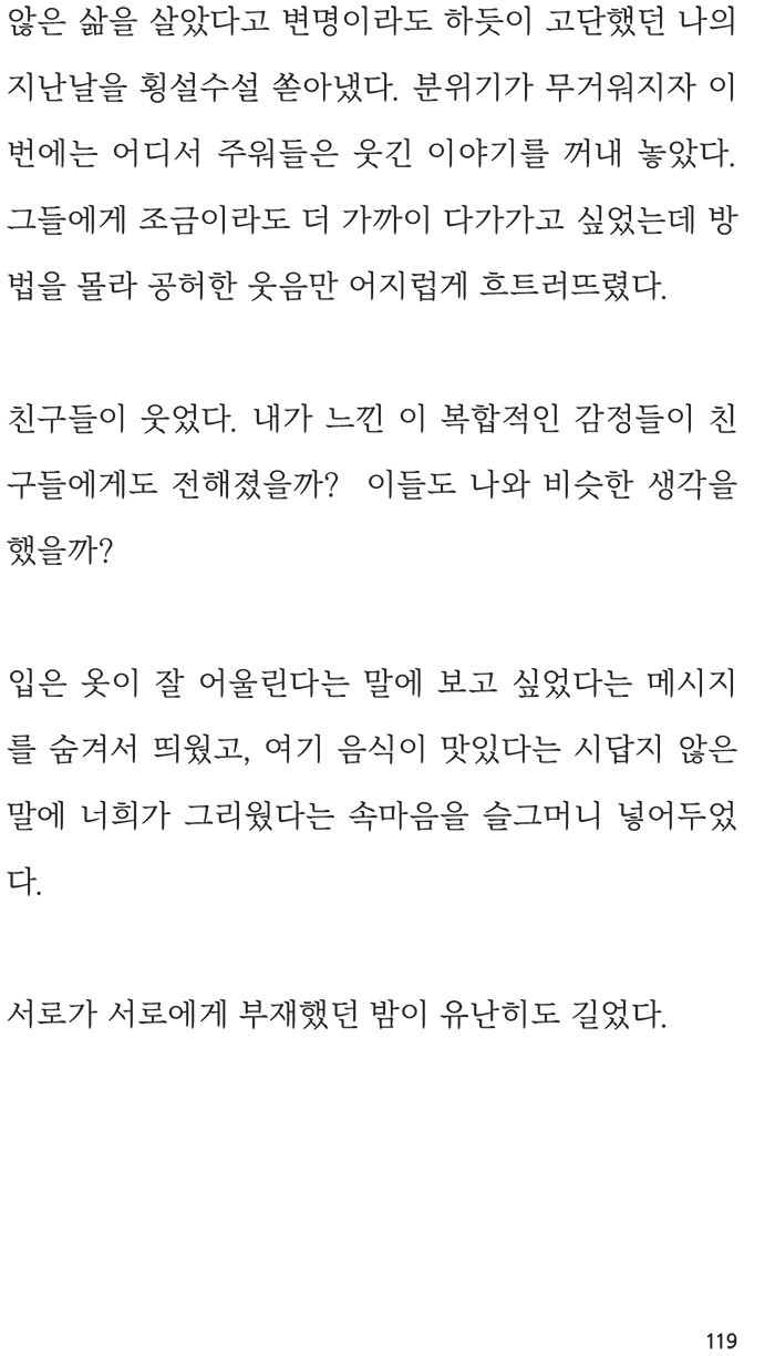 별다를 것 없는 똑같은 하루에서도 생각하는 것과 느끼는 것을 놓치고 싶지 않아 기록했습니다. 제가 혼자 쓰고 혼자 보던 '나의 일기장'이 이 세상에 나와 '남의 일기장'이 되었습니다.