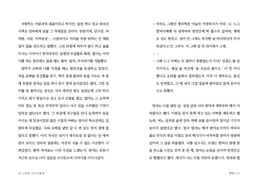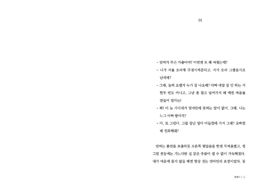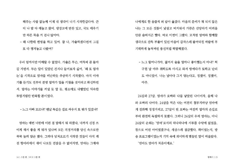 아빠와의 다툼 끝에 서울에서 자취하는 딸의 집으로 엄마가 찾아옵니다. 실로 오래간만에 딸은 엄마와 단 둘이 지내게 며칠을 보내게 되는데요. 가장 잘 안다고 생각했던 엄마에게 듣는 이야기가 딸은 참으로 낯섭니다. 딸은 어떤 낯선 엄마를 만나게 될까요.