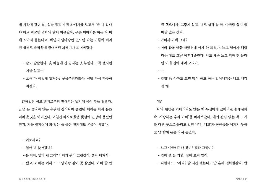 쉽게 읽히는 책이지만, 쉽게 쓰여지진 않았습니다. 서툰 표현이 혹은 무심코 선택한 단어가 되려 상처가 될까, 4명의 작가는 글을 쓰는 내내 고심했습니다. 또 아는 사람을 이야기 하자니, 그 속에는 필연적으로 얽힌 자신들이 있었기에, '어디까지 이야기를 해야 할까'를 두고 스스로와 지난한 싸움을 거치기도 했습니다. 4개월 간의 깊은 고민과 싸움 끝에 완성된 이야기는 그 어떤 소설보다 당신의 공감을 이끌어낼 것입니다.
