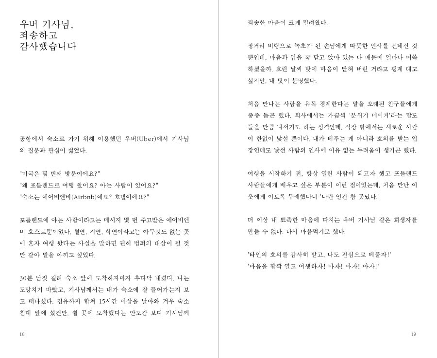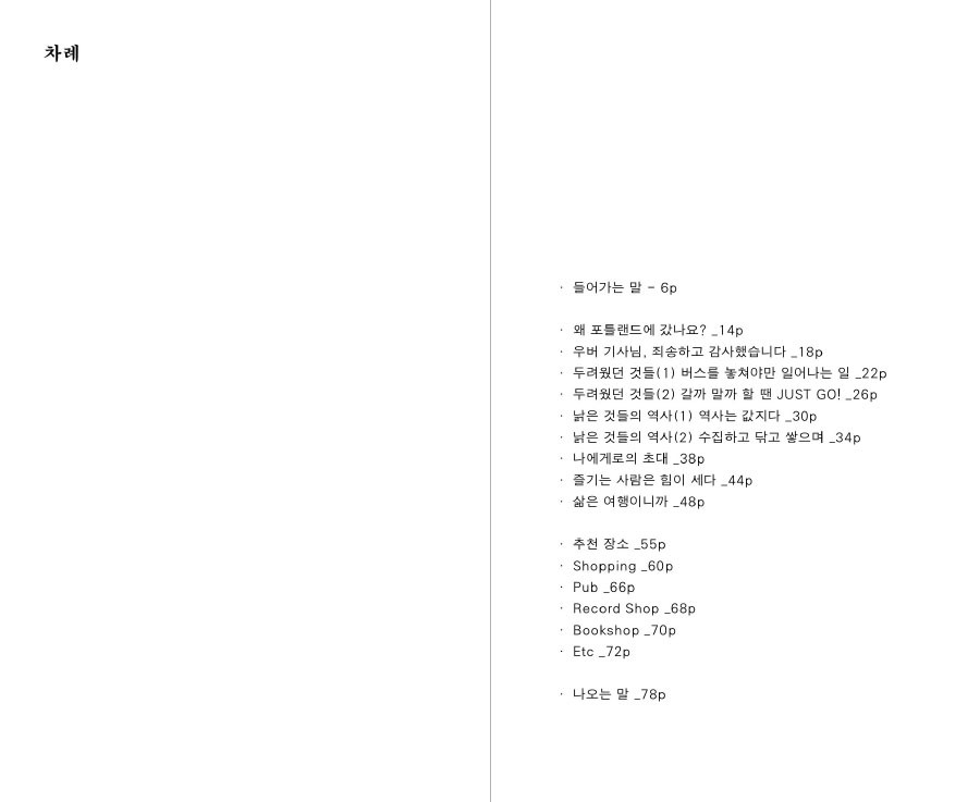 포틀랜드가 궁금하신 분들과 혼자 여행하기를 망설이시는 분들께 응원이 되는 책이고 싶습니다.