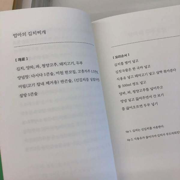 엄마 요리 레시피와 그 외 다양한 매뉴얼이 담긴 에세이입니다.