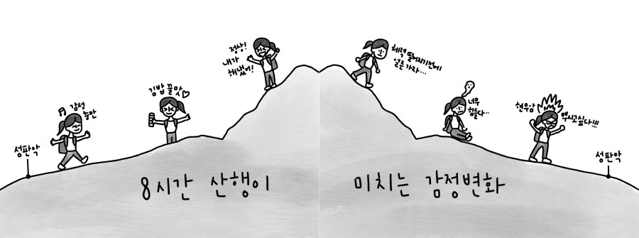 동네 뒷산도 숨 가빠서 못 오르던 한 여자가