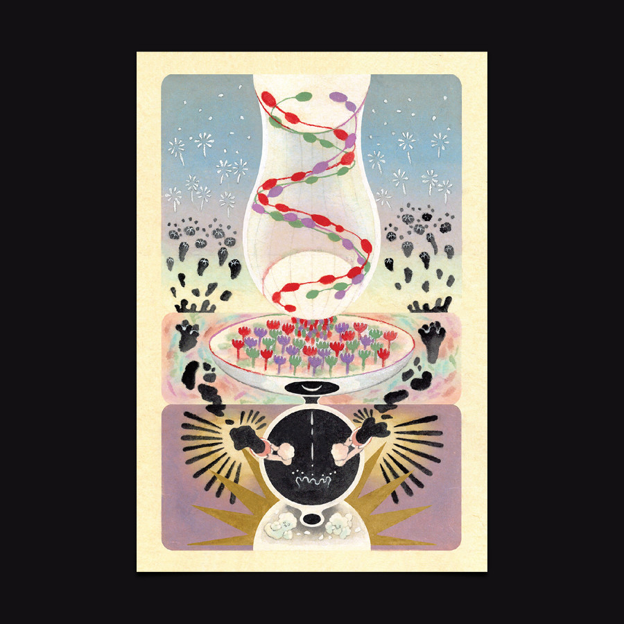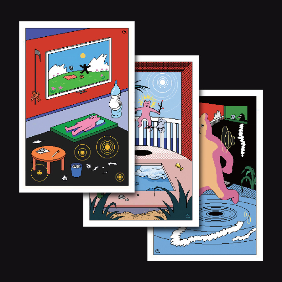 ooo의 「Play Time」은 친구들과의 즐거운 놀이 시간을 각 장면에 나누어 담았습니다. 과연 이 놀이는 어디에서, 누구를 위해 벌어지는 걸까요? 주로 도트를 이용한 그림과 만화를 그리는 ooo 특유의 위트가 돋보이는 엽서입니다.