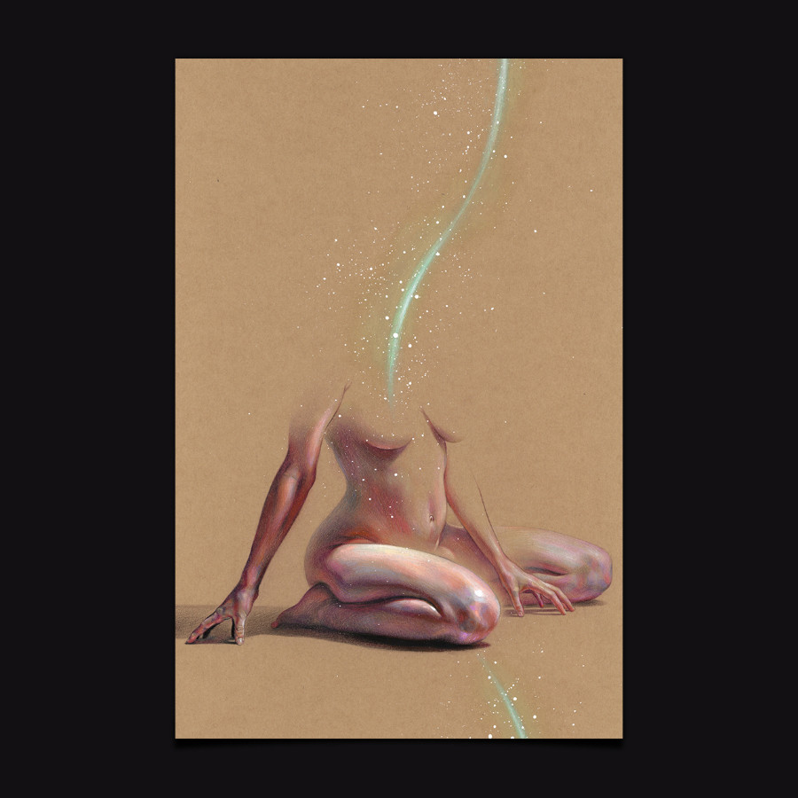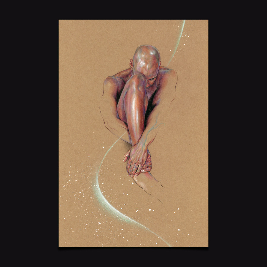 김완진의 「Eternity」는 몸과 의식에 갇힌 존재를 넘어, 오랜 시간 무수한 생을 통과해 거듭해온 우리의 본질을 환기해보려는 시도로 그린 연작입니다. 그림과 장면을 넘어 이어지는 푸른 선을 주목해보세요.