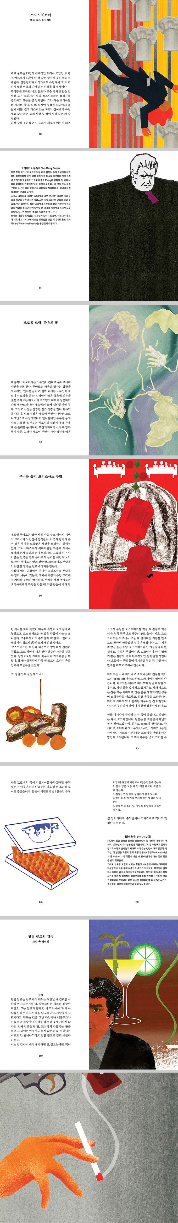 이 책에 탐정소설 속 흥미진진한 사건과 추리, 음식 이야기를 담았습니다. 또한, 음식과 죽음이라는 아이러니와 탐정소설 특유의 리듬, 고전 탐정소설의 감성을 잘 이해하고 구성한 감각적인 그림과 디자인이 또 다른 이야기를 만들어 갑니다.