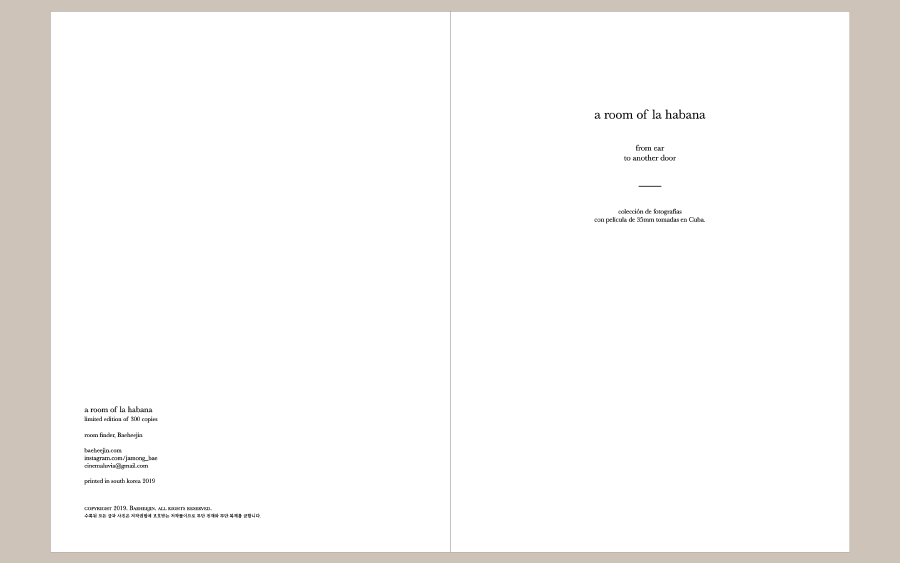 어린 날 한겨울, 따땃한 노란 장판에 배를 깔고 누워 시詩 비슷한 것을 끄적이던 때가 생각난다. 초등학생용 줄공책이었다. 스스로 내 방을 만들던 순간에 대한 최초의 기억이다. 특별했던 경험을 계기로 필름 카메라를 구입 했고, 13년째 함께하고 있다. 재작년에는 태어나 처음으로 한국 밖으로 나갔다. ‘쿠바’였다.
