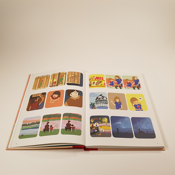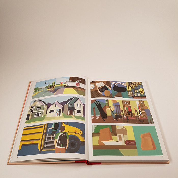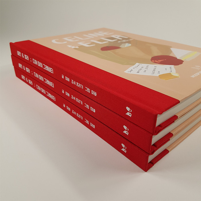 [셀린 & 엘라 ; 디어 마이 그래비티]의 색은 인물의 감정을 간접적으로 드러내고 있다. 안개 낀 듯 모호한 푸른색, 따뜻한 초록을 담은 푸른색, 반짝반짝 빛나던 찬란한 여름의 푸른색은 때로 칠흑처럼 어두운 푸른색으로 바뀐다. 멍처럼 짙은 보라색의 배경과 갓 베인 상처의 속살처럼 붉은 분홍색, 첫사랑처럼 설레는 수줍은 분홍색 등 셀린과 엘라의 감정이 배경색의 변화와 함께 배가된다. 그들의 감정을 드러내는 것은 배경색뿐만이 아니다. 누군가에게 쓰인 ‘보내지 못할’ 편지의 배경색은 셀린과 엘라가 각자 입고 있는 옷 색깔과도 같다.