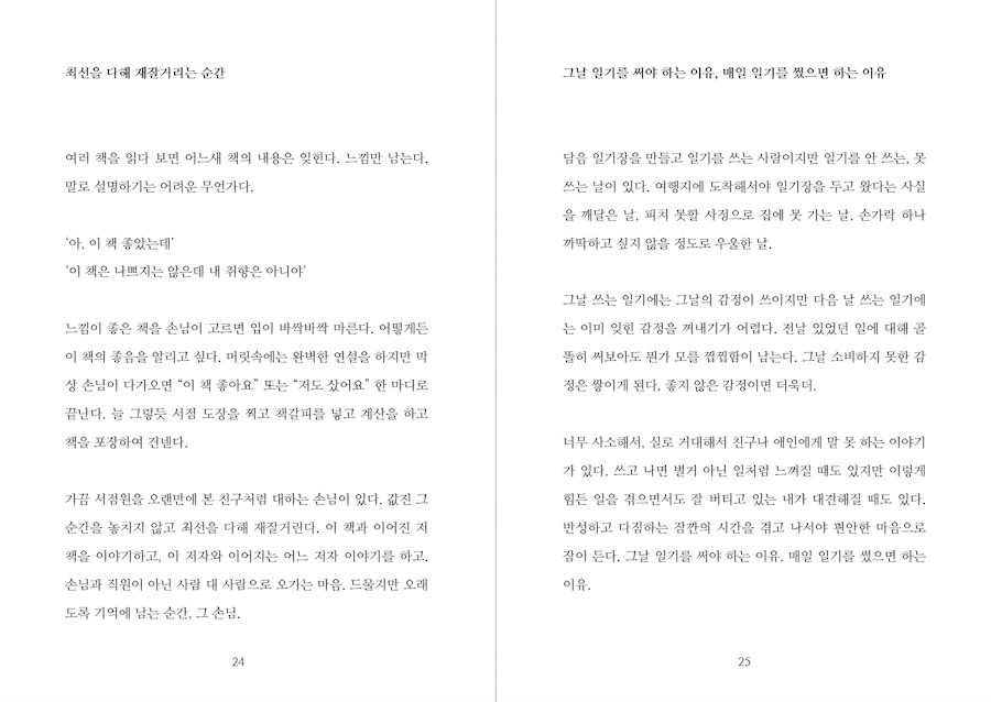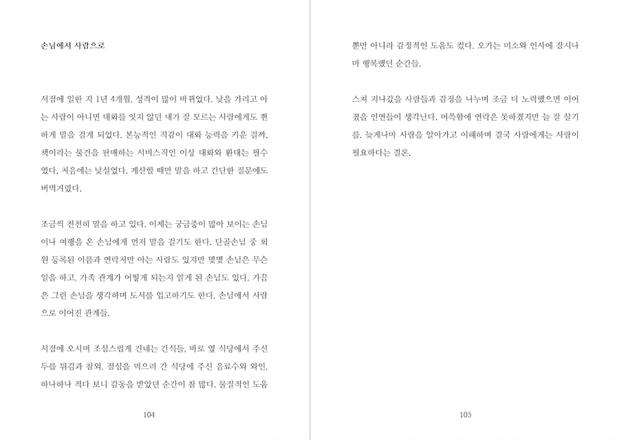 담음 일기장 만드는 서점원의 기록입니다. 일상을 관찰하고 발견하고 수집한 보통의 이야기입니다. 함께 나눈 대화, 보고 느끼고 감정, 기쁨과 고마움과 미안함과 서운함과 서러움... 그 반성과 다짐에 대한 글입니다. 일기를 만드는 사람의 일기 같은 글, 마주 보고는 나누지 못할 깊은 이야기. 그래서 더 공감할 수 있을 거예요. 공감이 위로가 되기를 바라며 썼습니다.