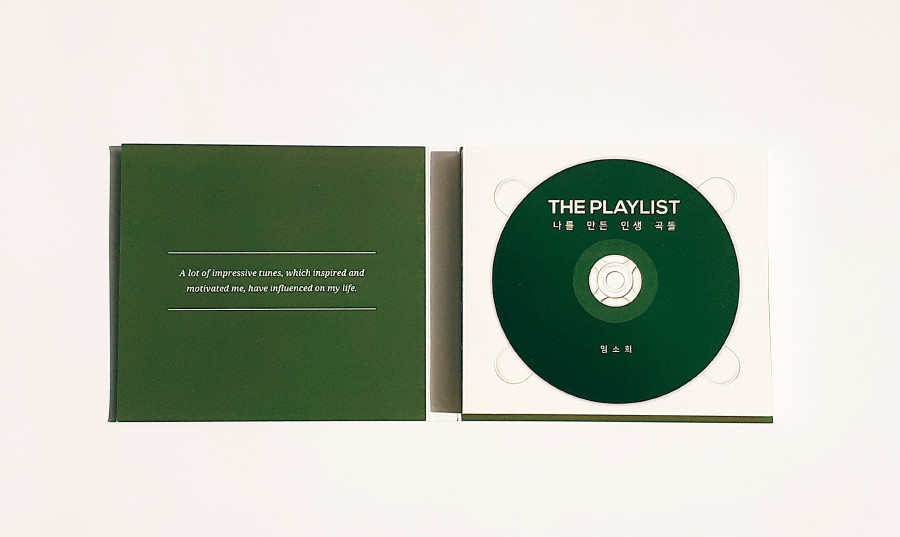 책의 모양은 디지팩(Digipak)이라는 음반 형태를 컨셉으로 하였으며, CD 앨범과 똑같은 크기로 직접 디자인하였습니다.
